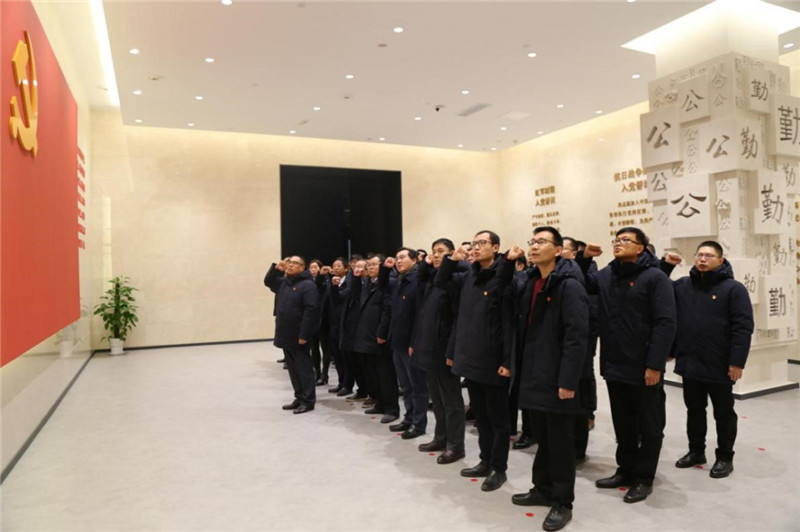 隨后,在宣誓廳,全體黨員重溫入黨時(shí)的決心,莊嚴(yán)地舉起右手,又一次向黨旗作出鄭重承諾,堅(jiān)定為黨的事業(yè)奮斗終身的理想信念。