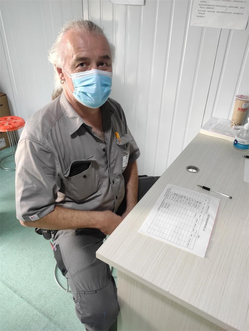 Olaf Mischur(音譯:奧樂夫)58歲來自德國(guó),現(xiàn)服務(wù)于山鋼股份萊蕪分公司新舊動(dòng)能轉(zhuǎn)換1號(hào) 3800m3高爐現(xiàn)場(chǎng),主要負(fù)責(zé)指導(dǎo)TMT開鐵口機(jī)設(shè)備的安裝和調(diào)試工作。