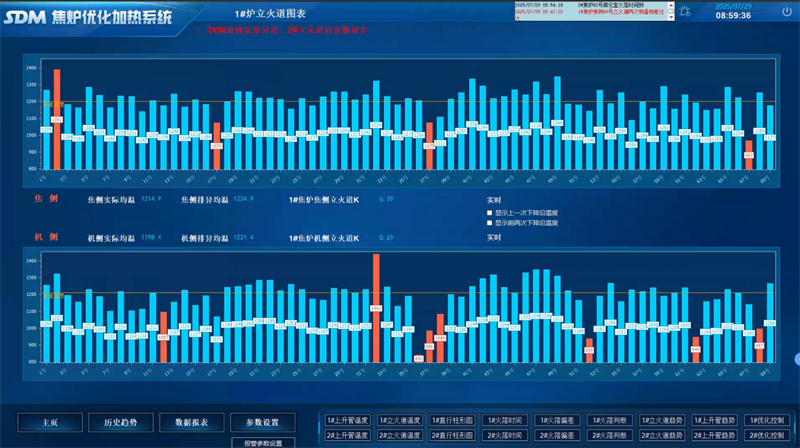 在煉焦環(huán)節(jié),焦?fàn)t自動測溫和優(yōu)化加熱系統(tǒng)成為節(jié)能降耗的“利器”。276個立火道紅外測溫點實時采集溫度數(shù)據(jù),結(jié)合荒煤氣溫度與煙氣殘氧分析,系統(tǒng)自動調(diào)節(jié)煤氣流量與分煙道吸力,預(yù)計使加熱煤氣消耗降低2.8%,全爐溫度均勻系數(shù)提升至0.92。通過火落時間預(yù)測與標(biāo)準(zhǔn)溫度動態(tài)優(yōu)化,顯著減小結(jié)焦時間偏差,大幅減少了能源浪費。