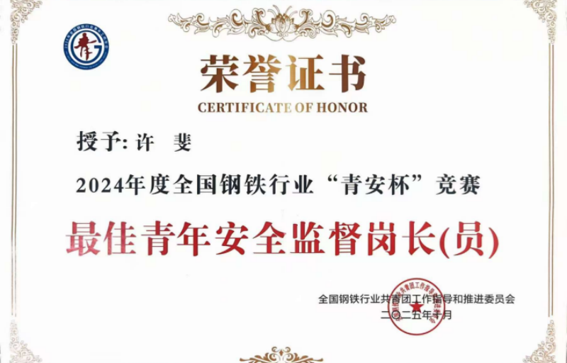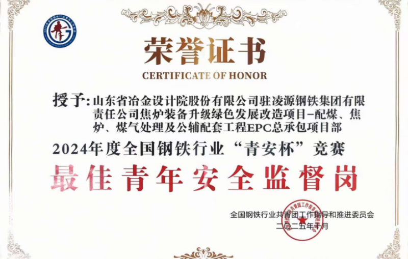 近日,隨著2024年度全國鋼鐵行業(yè)“青安杯”競(jìng)賽獲獎(jiǎng)證書的正式發(fā)放,山冶設(shè)計(jì)駐凌源鋼鐵集團(tuán)有限責(zé)任公司焦?fàn)t裝備升級(jí)綠色發(fā)展改造項(xiàng)目——配煤、焦?fàn)t、煤氣處理及公輔配套工程EPC總承包項(xiàng)目部及安全管理人員再添殊榮。項(xiàng)目部榮獲“最佳青年安全監(jiān)督崗”,項(xiàng)目安全經(jīng)理許斐榮獲“最佳青年安全監(jiān)督崗長(員)”獎(jiǎng)項(xiàng)。這一集體與個(gè)人的雙重榮譽(yù),既是對(duì)其在安全生產(chǎn)領(lǐng)域卓越貢獻(xiàn)的充分肯定,也為2026年項(xiàng)目安全管理工作開啟了良好開端。
