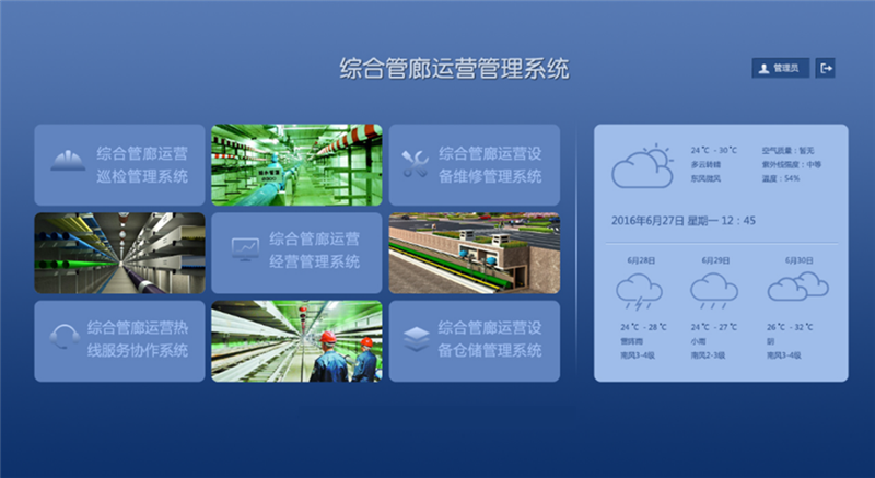 智慧管廊:以“知、控、警、決、管、營(yíng)、享”為管理方針,以大數(shù)據(jù)、物聯(lián)網(wǎng)、云架構(gòu)、智能組態(tài)、綜合業(yè)務(wù)決策分析、人工智能等技術(shù)為支撐,結(jié)合城市地理信息系統(tǒng)(GIS)和建筑信息模型(BIM),通過整合各數(shù)據(jù)分析,構(gòu)建指揮統(tǒng)一、功能齊全、反應(yīng)靈敏、運(yùn)轉(zhuǎn)高效的管廊運(yùn)行綜合管理平臺(tái),包括1個(gè)中心、1個(gè)平臺(tái)、7個(gè)應(yīng)用系統(tǒng)、N個(gè)終端,對(duì)綜合管廊內(nèi)環(huán)境、設(shè)備及運(yùn)行進(jìn)行實(shí)時(shí)監(jiān)控、運(yùn)營(yíng)管理和安全預(yù)警,提高決策指揮效率,切實(shí)提高處置突發(fā)安全事件的能力,以保障系統(tǒng)安全、高效運(yùn)行。